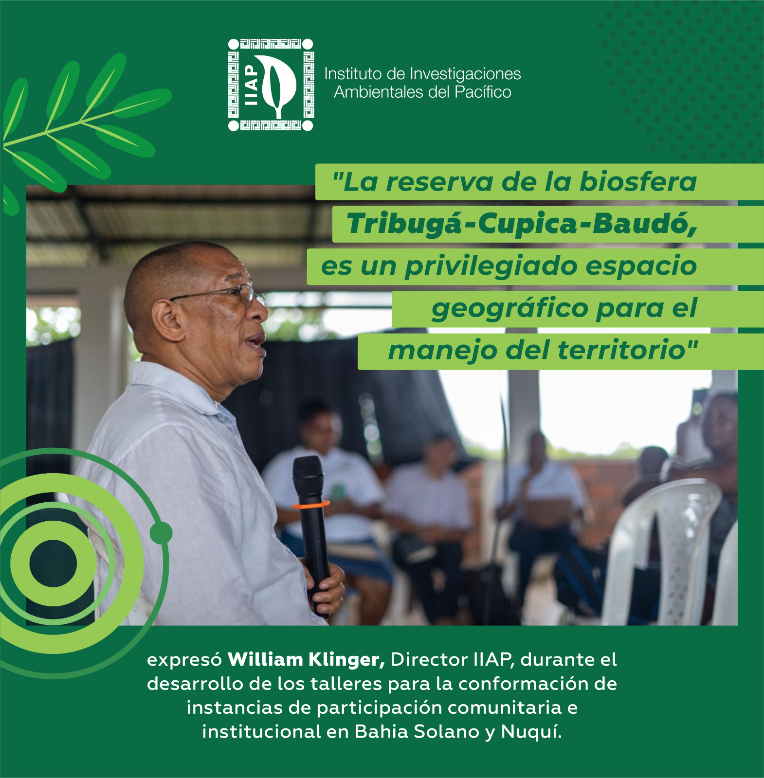 Durante cinco (5) días, organizaciones de base y comunidades de Bahía solano y Nuquí, institucionalidad local y del orden nacional al igual que organizaciones no gubernamentales; se dieron cita en el Pacífico chocoano con el fin de desarrollar talleres para la conformación del organismo de control de la reserva de la biosfera Tribugá – Cupica - Baudó; el cual se encargará de gestionar sosteniblemente los recursos naturales y la diversidad biológica, a la vez que garantizará la inclusión y participación de las comunidades étnicas representada en Consejos Comunitarios y Resguardos Indígenas