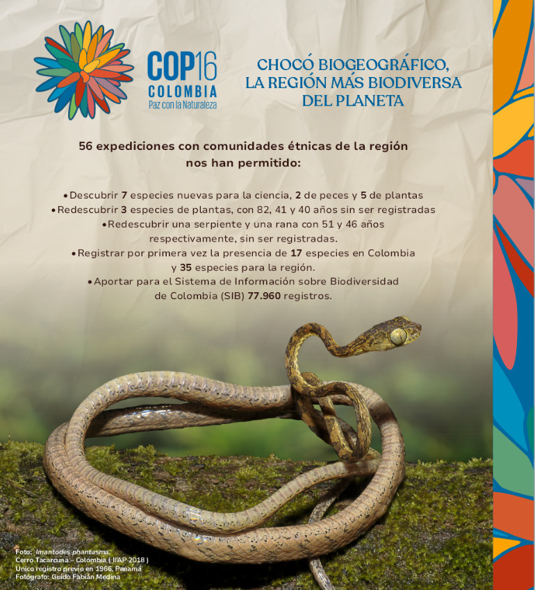 3. Encuentros comunitarios e institucionales narrativos de experiencias de las comunidades étnicas y campesinas del Chocó Biogeográfico en monitoreo de biodiversidad, estrategias propias de conservación, uso sostenible y recuperación de la biodiversidad. Serán dos encuentros a realizarse simultáneamente el 10 de octubre en Tumaco y Quibdó, en Tumaco se presentarán las experiencias de Nariño, Cauca y Valle del Cauca y en Quibdó las del Chocó, Risaralda, Antioquia y Córdoba.