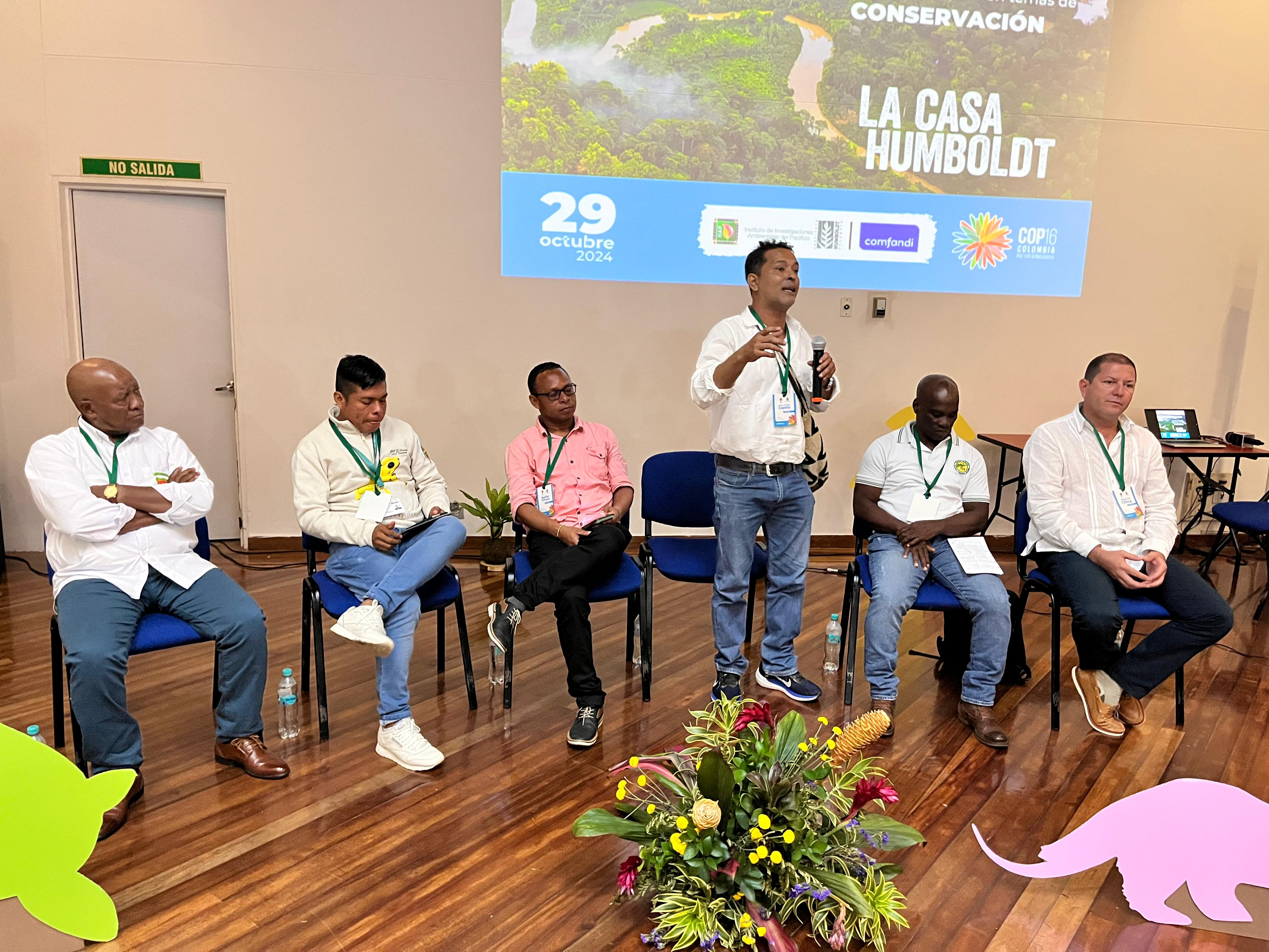 Como IIAP, nos dimos a la tarea de cumplir con el mandato “La COP de la Gente” por ello, nuestra puesta en escena se desarrolló en 4 paneles (espacios de intercambio de saberes) relacionados con biodiversidad, como fueron: Generación de Conocimiento, Uso Sostenible, Conservación y Restauración; donde 26 hombres y mujeres, dos de ellos estudiantes de colegio, en representación de las comunidades negras, indígenas, mestizas y campesinas que habitan el Chocó Biogeográfico; dieron a conocer sus experiencias exitosas a través del diálogo ante Colombia y el mundo.